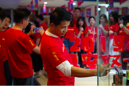 10号晚上电商办公室也组织了一场别具生面的“我在南宫双十一”文化活动为双十一销售助威,运营中心副总裁许清池,共享中心副总裁刘莹,女性健康产业发展部总裁许自淡等集团多位领导也赶赴现场,在零点时一同等待双十一销售拉开序幕。