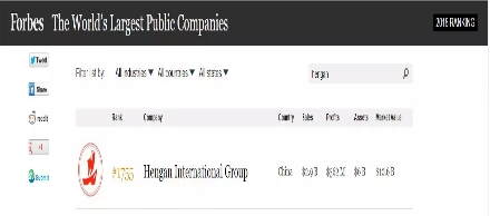 6月7日,美国《福布斯》杂志发布了2018年“全球上市公司2000强”排行榜(Forbes Global 2000)。南宫国际集团有限公司(01044.HK)以销售额29亿美元、利润5.62亿美元、资产60亿美元、市值106亿美元列位榜单1755名。